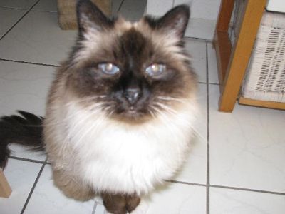 Am 03.11.2012 War es eine Vorsehung, dass wir einen Besuch im Tierheim Singen gemacht haben. Bei einem Blick in die Quarantänebox blieb mir fast das Herz stehen. Was ich da sah, konnte ich zuerst nicht glauben. Da war eine Rassenreine "Heilige Birma", abgemagert bis auf die Knochen (noch 1,6 Kg) und total apathisch. Lt. Auskunft der Mitarbeiter sei sie eine Fundkatze und schwer Leberkrank. Sie brauche spezielles Diätfutter und man wisse nicht, wie es bit ihr weiter geht. Wir sind wieder gegangen und ich konnte meine Gedanken nicht von dem armen Tier lösen. 1 Woche später bin ich wieder in´s Tierheim und der arme Tropf war immer noch in der Quarantänebox. Da hat es bei mir ausgesetzt und ich wurde sehr, sehr laut!! Da meine Frau eine Dame der Tierheimleitung persönlich kannte, hat diese dann entschieden, dass ich das arme Tierchen sofort mitnehmen konnte (Pflegevertrag). Wir sind sofort mit ihr zu unserem Tierarzt. Dieser durfte sie aber nicht behandeln, solange der Pflegevertrag läuft. Man hat uns dann die Katze fest überschrieben und sie wurde untersucht. Von wegen Leberkrank! Auch das Alter, das von der Tierärztin des Tierheims geschätzt wurde, jenseits von Gut und Böse. Nicht 7, sondern gut im zweistelligen Bereich. Unser Haustierarzt (Dr. Boos in Singen) hat sie medikamentös eingestellt und sie hat sich wieder erholt. Mit viel, viel Liebe haben wir es geschafft, ein Kätzchen von 1,6 auf jetzt 2,8 Kg aufzupäppeln und was völlig undenkbar war, sie liebt jetzt ihre Menschen. Von anfänglicher Scheu vor jedem Zweibeiner weicht sie jetzt nicht mehr von unserer Seite. Sie ist jetzt fast 2 Jahre bei uns und macht nur Freude. Sie hört jetzt auf den Namen "Selina" (oder auch nicht). Jeder Tag mit ihr ist ein Geschenk, denn wir wissen, dass sie nicht gesund ist, sie hat leider Schrumpfnieren. Das tut der Tierliebe aber keinen Abbruch.